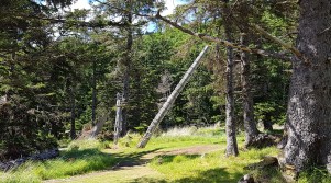 Logging on Haida Gwaii has a long and checkered history. I saw firsthand examples of logging practices from years gone by that resulted in long-term destruction to the surrounding environment including fish-bearing streams and wetlands. Occasionally I came across logging equipment used years ago that had just been left there after forests had been cleared. I didn’t notice Douglas-fir trees which are plentiful here but instead forests filled with Western hemlock (Tsuga heterophylla) and Sitka spruce (Picea sitchensis). I was amazed at the number of eagles and ravens that inhabit Haida Gwaii. Not surprisingly, the two main kinship groups of the Haida Gwaii clans are Raven and Eagle. I learned to read